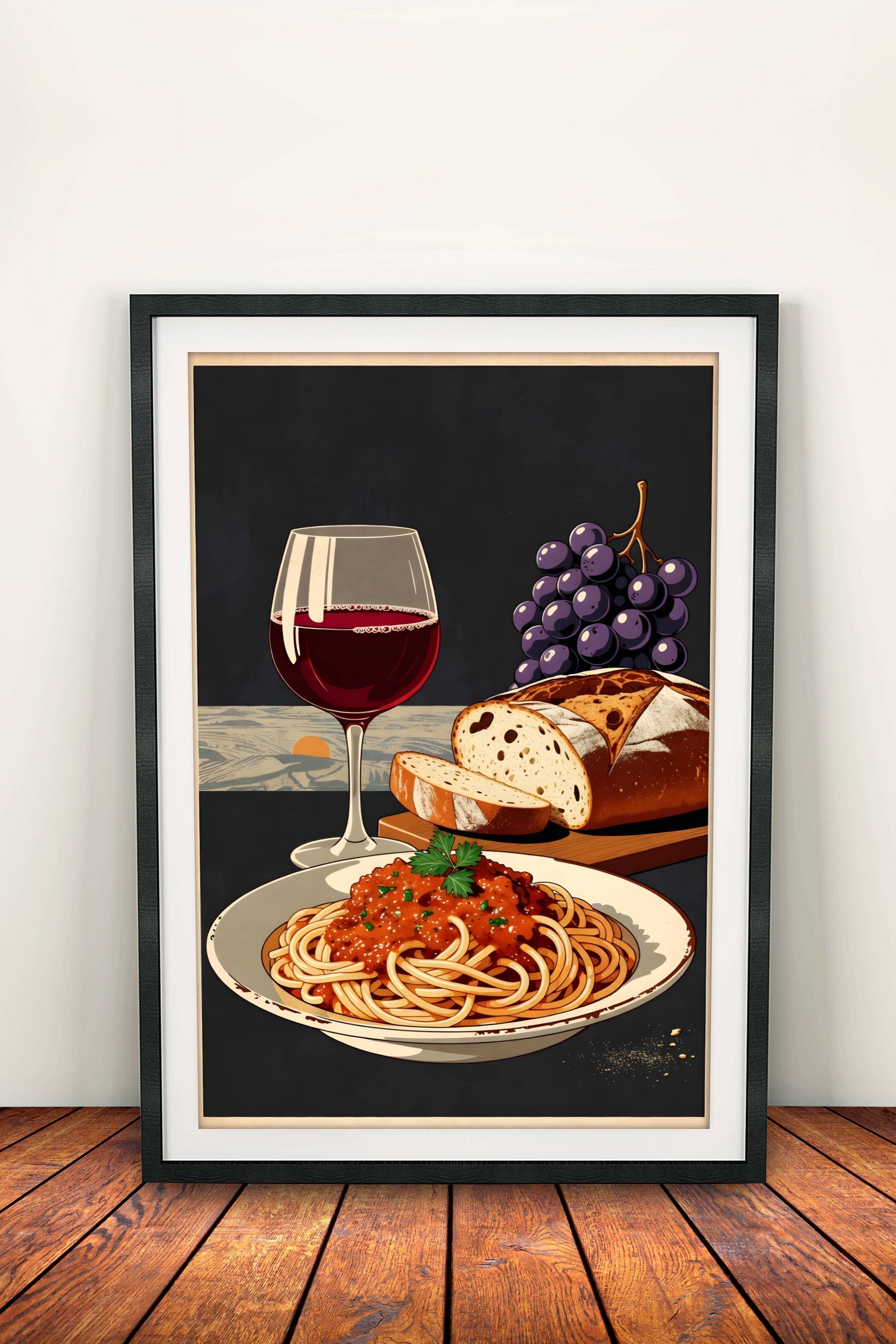 Italian Pasta & Wine Poster – Retro Buon Appetito Art
