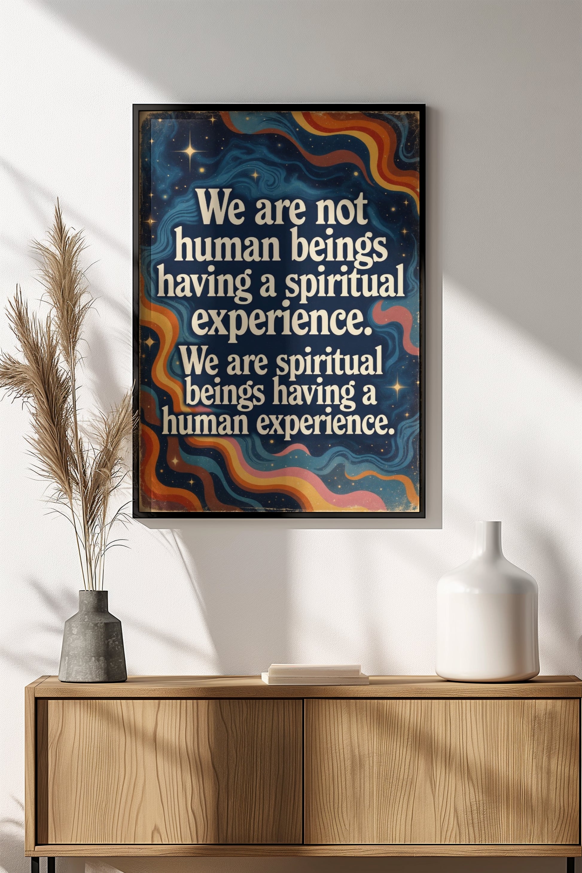 We Are Spiritual Beings Poster - Retro Cosmic Wisdom Art